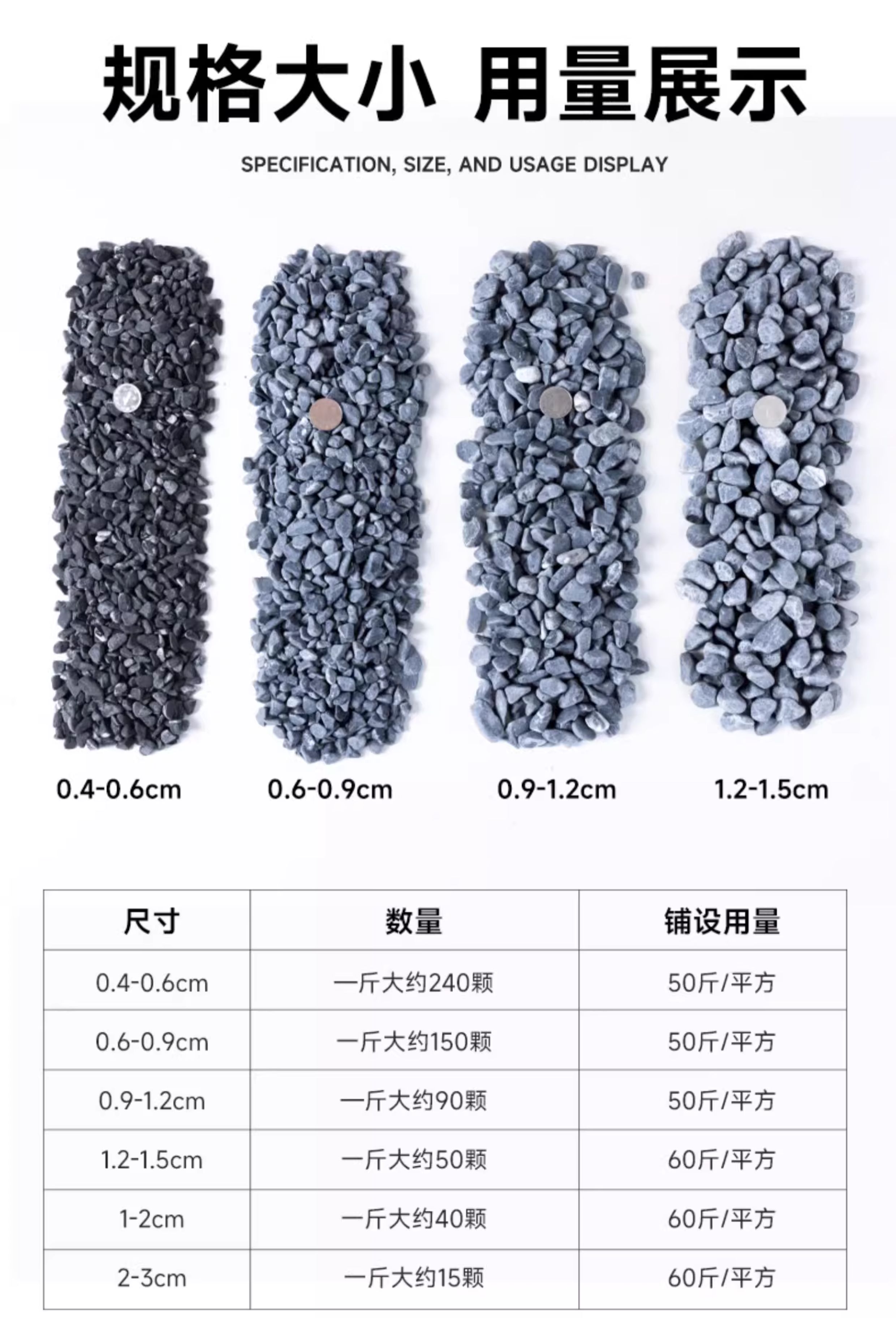 50斤灰黑色砾石水洗石日式庭院铺地枯山水花园造景装饰露营碎石子
