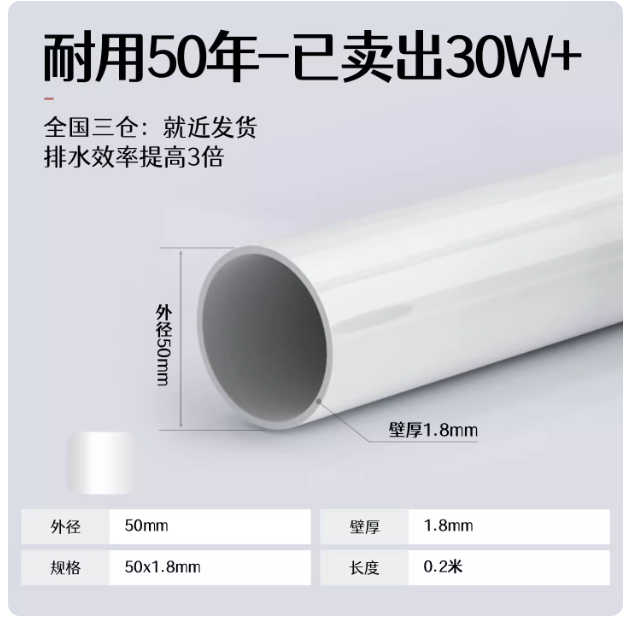 pvc排水管50下水管75落水管厚大口径90通风管110塑料雨水管160200