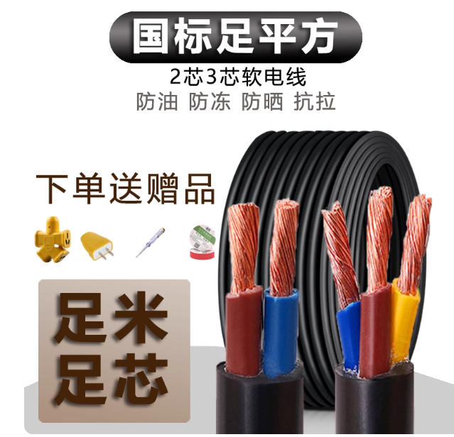 电线国标家用软电缆线2芯护套2.5/4/6/10平方电动车充电线3芯电源